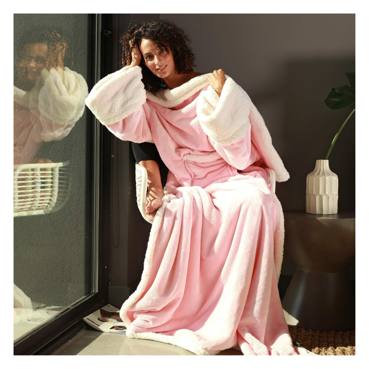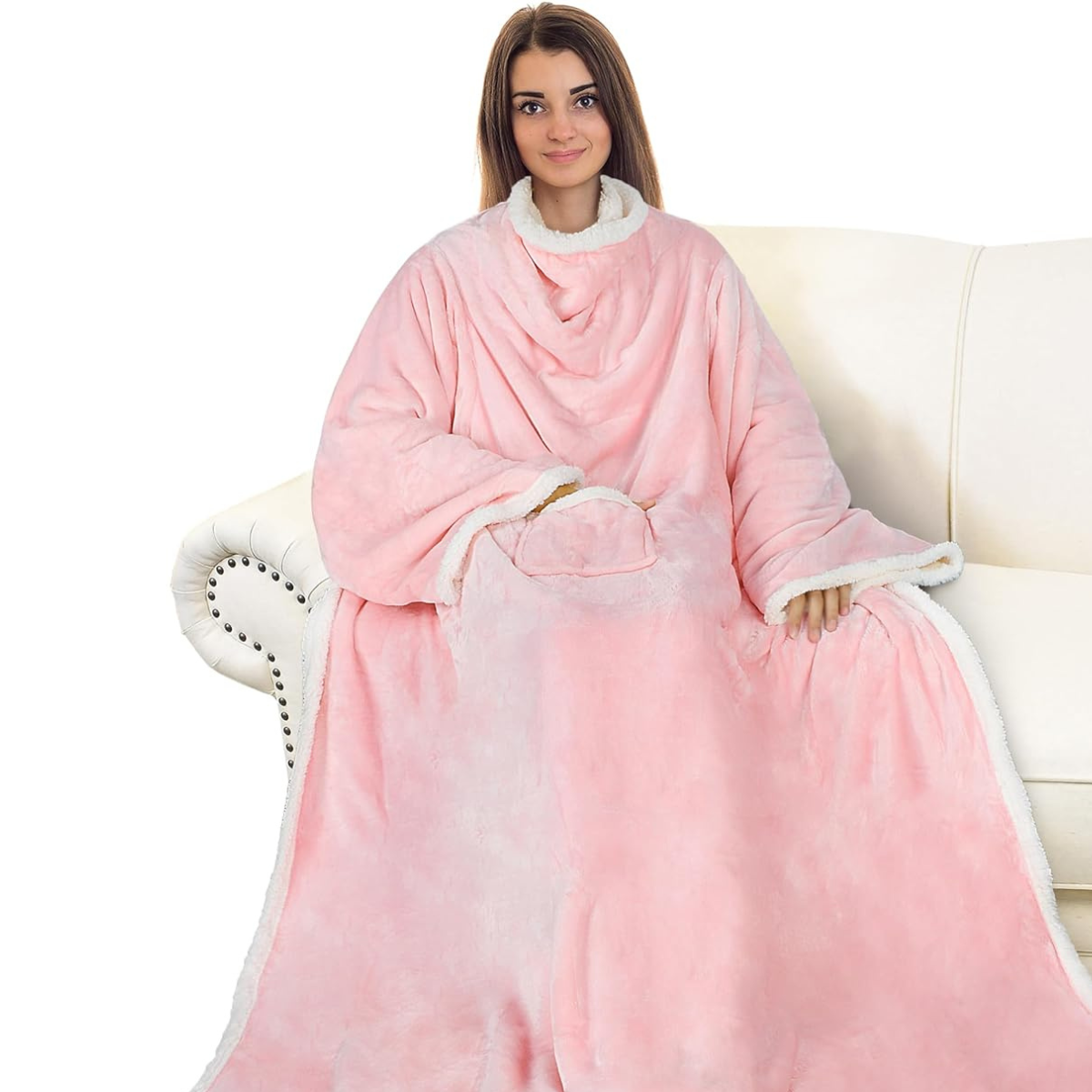Manta Rosa con Mangas y Forro Polar